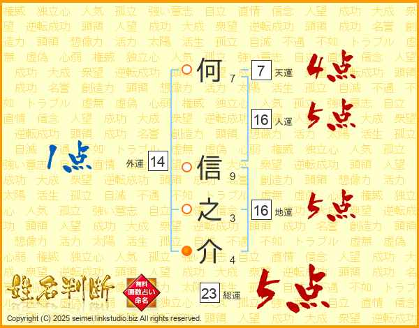 何信之介さんの総運は23画の5点!