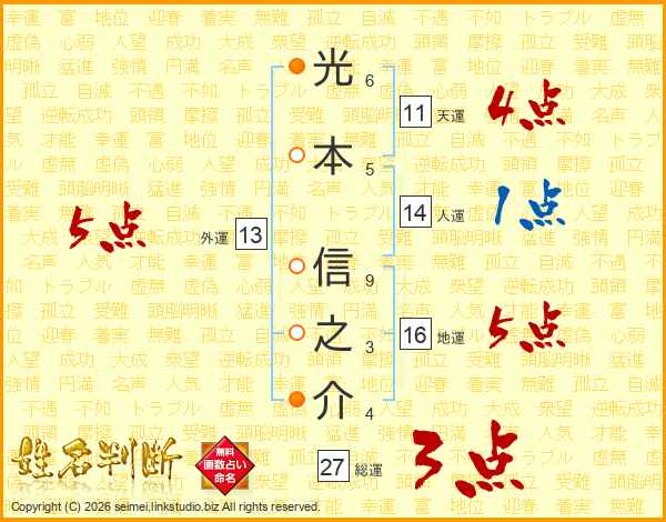 光本信之介さんの天運は11画の4点!