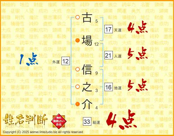 古(5画)場(12画) 信(9画)之(3画)介(4画)