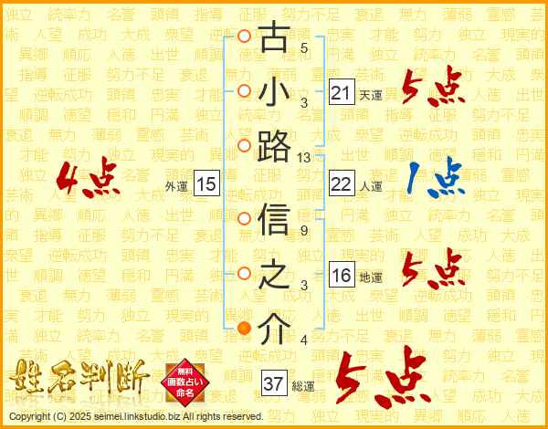 古(5画)小(3画)路(13画) 信(9画)之(3画)介(4画)