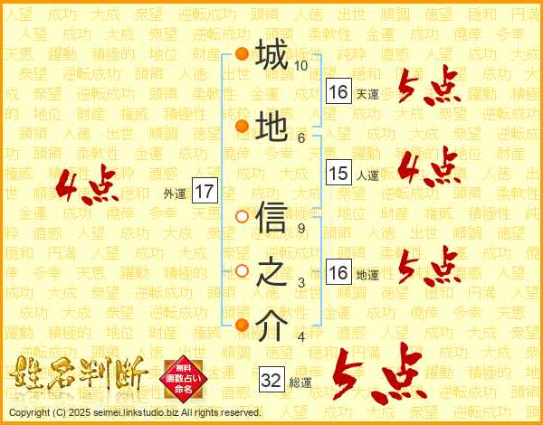 城(10画)地(6画) 信(9画)之(3画)介(4画)