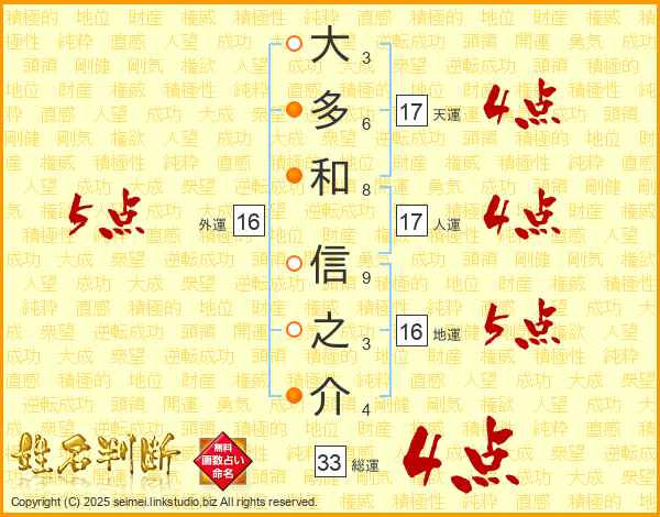 大多和信之介さんの総運は33画の4点!