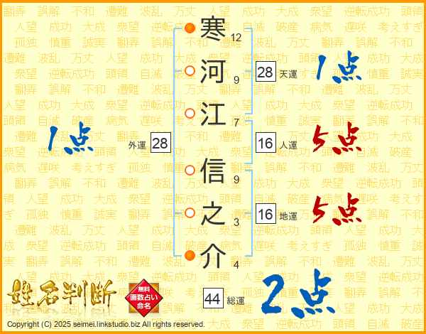 寒(12画)河(9画)江(7画) 信(9画)之(3画)介(4画)