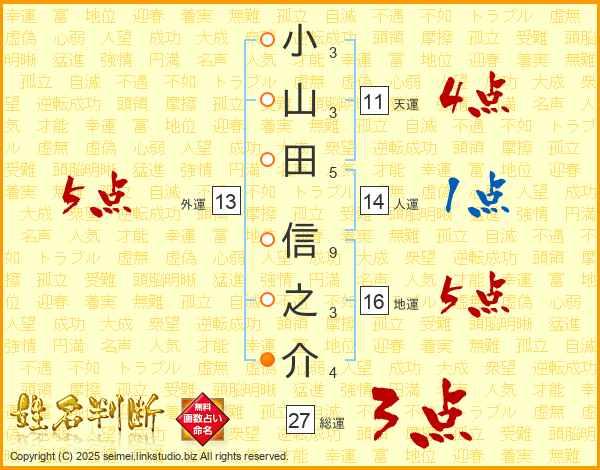 小山田信之介さんの天運は11画の4点!