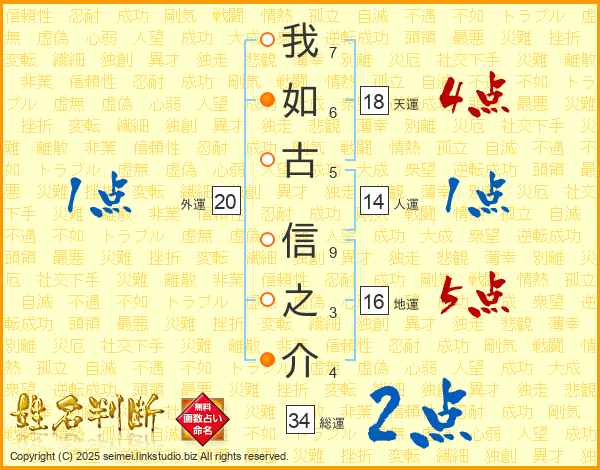 我(7画)如(6画)古(5画) 信(9画)之(3画)介(4画)