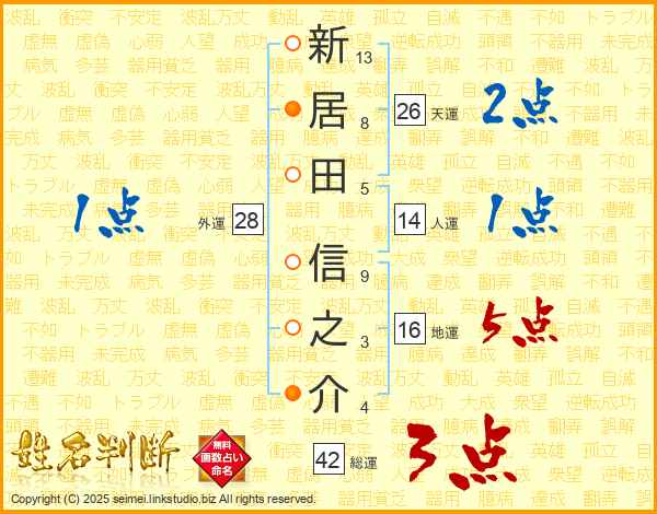 新居田信之介さんの天運は26画の2点!