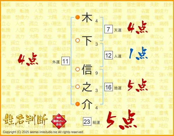 木(4画)下(3画) 信(9画)之(3画)介(4画)