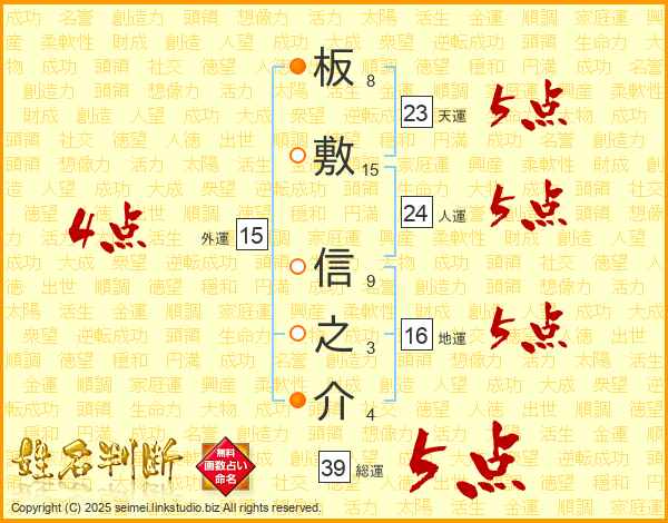 板(8画)敷(15画) 信(9画)之(3画)介(4画)
