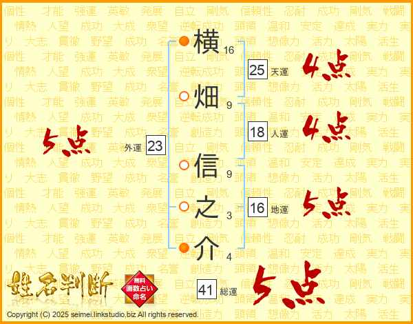 横(16画)畑(9画) 信(9画)之(3画)介(4画)