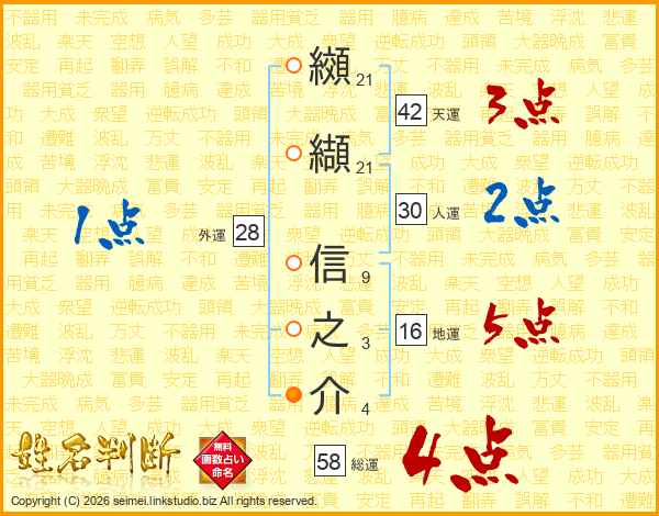 纐纈信之介さんの総運は58画の4点!