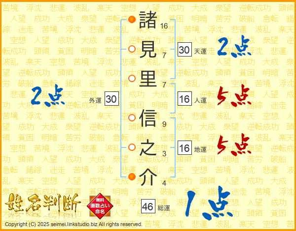 諸(16画)見(7画)里(7画) 信(9画)之(3画)介(4画)