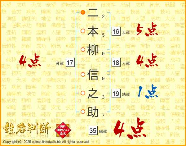 二(2画)本(5画)柳(9画) 信(9画)之(3画)助(7画)