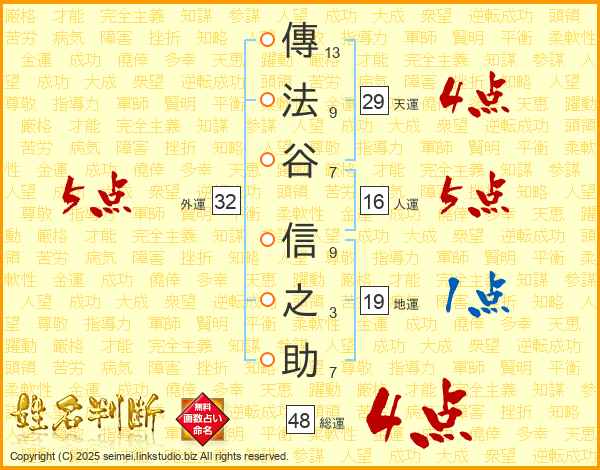 傳法谷信之助さんの総運は48画の4点!