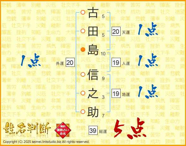 古田島信之助さんの総運は39画の5点!