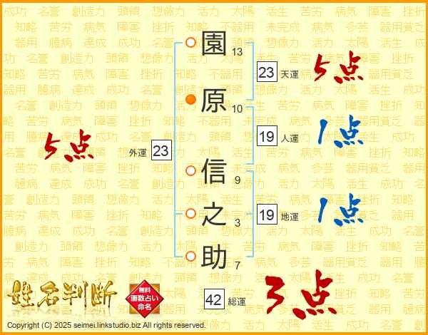 園原信之助さんの天運は23画の5点!