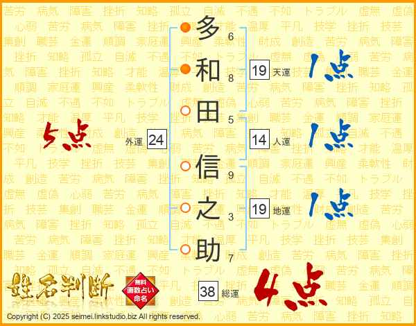 多和田信之助さんの総運は38画の4点!