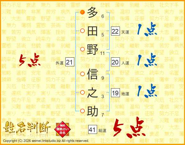 多田野信之助さんの総運は41画の5点!
