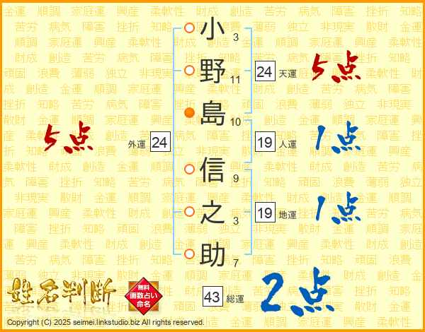 小野島信之助さんの天運は24画の5点!