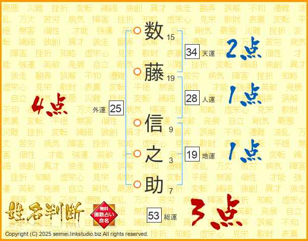 数(15画)藤(19画) 信(9画)之(3画)助(7画)