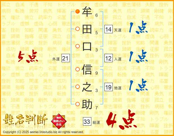 牟田口信之助さんの外運は21画の5点!