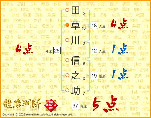 田草川信之助さんの総運は37画の5点!
