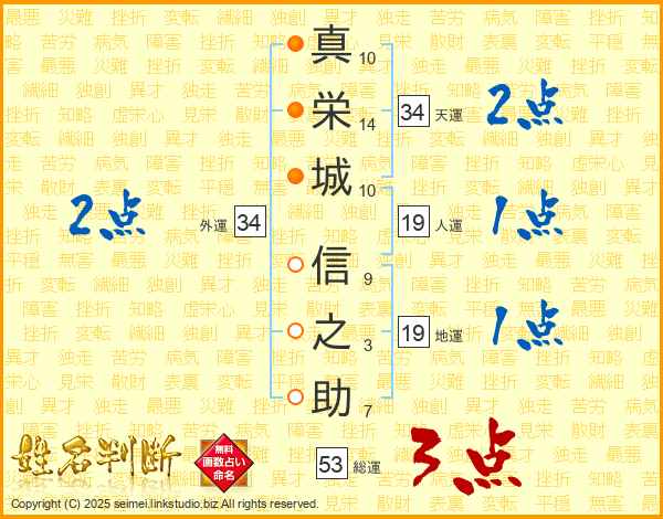 真(10画)栄(14画)城(10画) 信(9画)之(3画)助(7画)