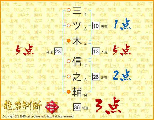 三ツ木信之輔さんの人運は13画の5点!