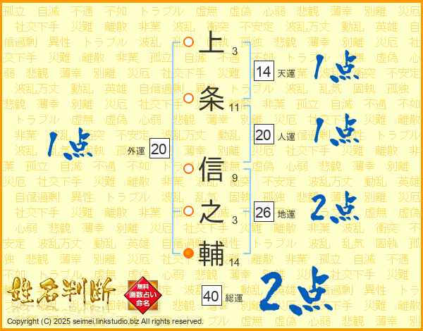 上(3画)条(11画) 信(9画)之(3画)輔(14画)
