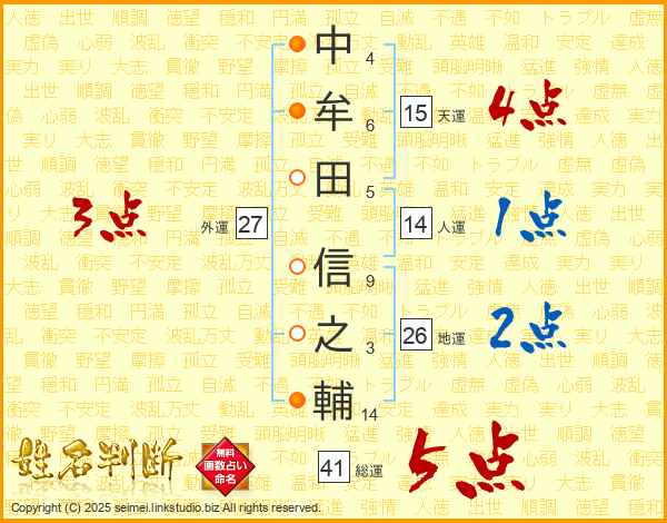 中牟田信之輔さんの天運は15画の4点!