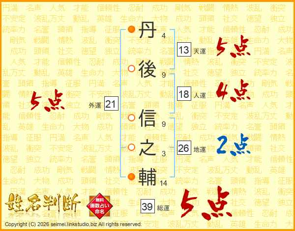 丹後信之輔さんの総運は39画の5点!