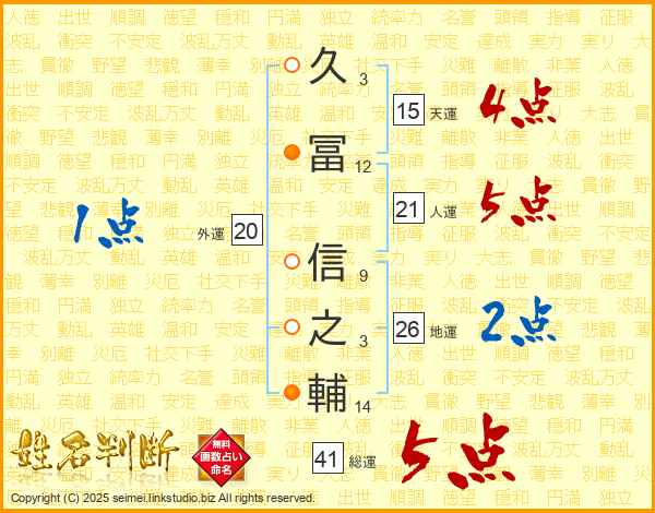 久(3画)冨(12画) 信(9画)之(3画)輔(14画)