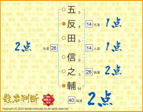五反田信之輔さんの総運は40画の2点!