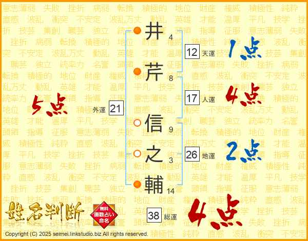 井芹信之輔さんの総運は38画の4点!