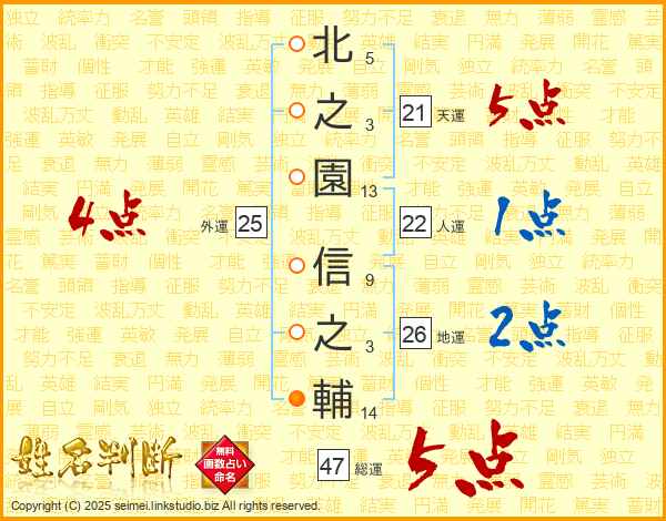 北之園信之輔さんの総運は47画の5点!