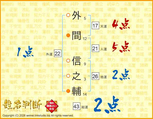 外間信之輔さんの総運は43画の2点!