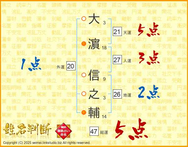 大(3画)濵(18画) 信(9画)之(3画)輔(14画)