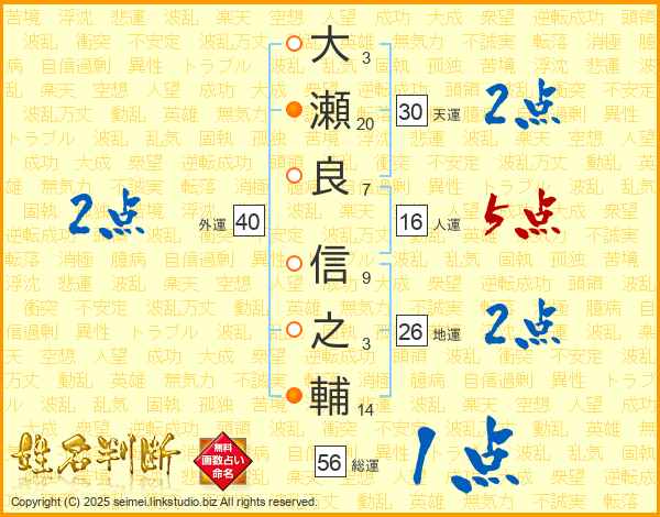 大(3画)瀬(20画)良(7画) 信(9画)之(3画)輔(14画)
