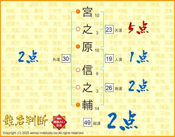 宮之原信之輔さんの総運は49画の2点!