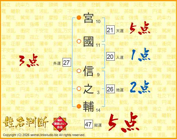 宮國信之輔さんの総運は47画の5点!