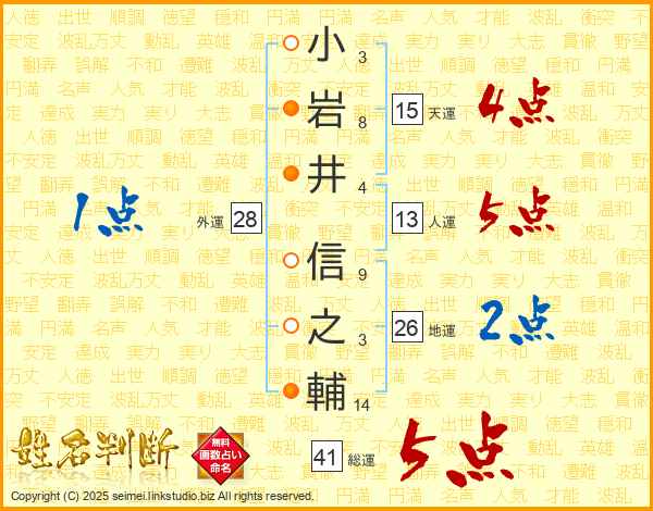 小岩井信之輔さんの総運は41画の5点!