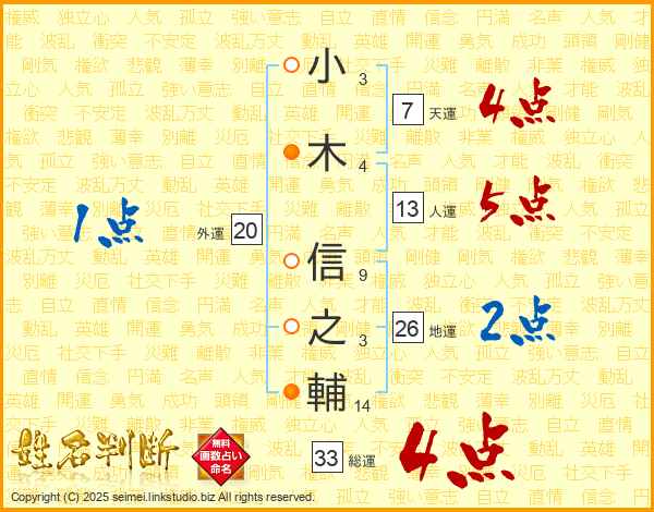 小(3画)木(4画) 信(9画)之(3画)輔(14画)