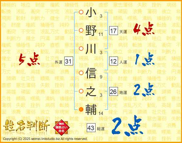小野川信之輔さんの総運は43画の2点!