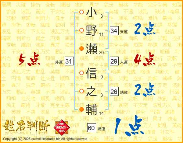 小野瀬信之輔さんの天運は34画の2点!