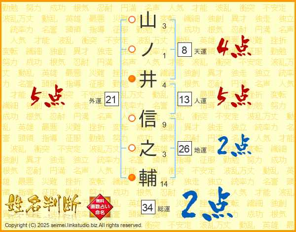 山(3画)ノ(1画)井(4画) 信(9画)之(3画)輔(14画)
