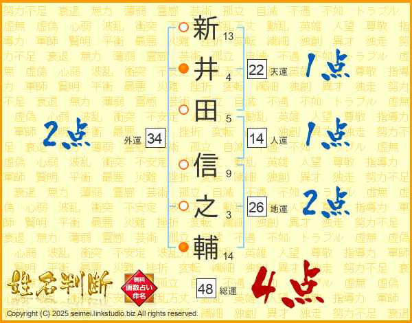 新(13画)井(4画)田(5画) 信(9画)之(3画)輔(14画)