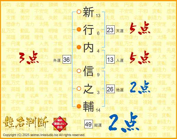 新(13画)行(6画)内(4画) 信(9画)之(3画)輔(14画)