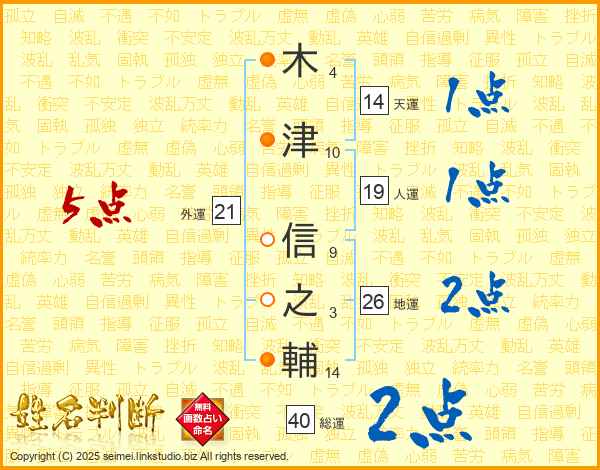 木津信之輔さんの地運は26画の2点!