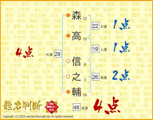 森(12画)高(10画) 信(9画)之(3画)輔(14画)