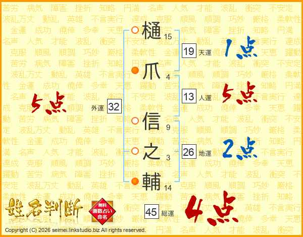 樋(15画)爪(4画) 信(9画)之(3画)輔(14画)