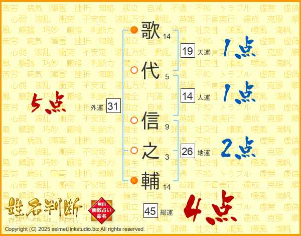 歌(14画)代(5画) 信(9画)之(3画)輔(14画)